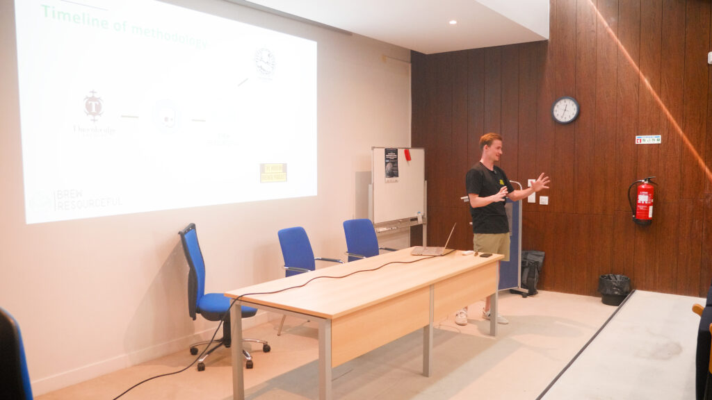 Durante o workshop, Chris partilha vários casos reais do seu trabalho com cervejeiras no Reino Unido e na Europa. Um dos exemplos que mais chama a atenção é o da reutilização de levedura: uma prática simples, mas muitas vezes negligenciada.
